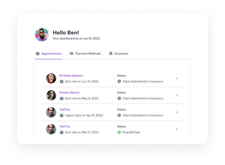 Our intuitive UX keeps the patient aware of the billing status of the appointment.